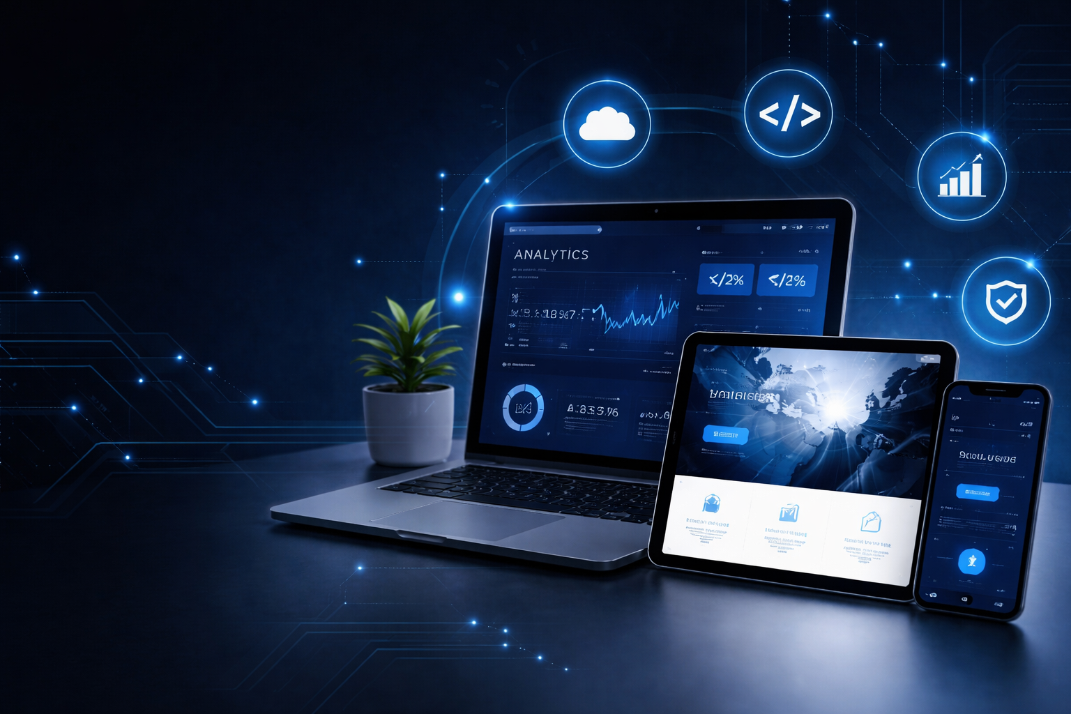 Desenvolvemos sites profissionais, sistemas personalizados e automações inteligentes que transformam a forma como sua empresa opera.